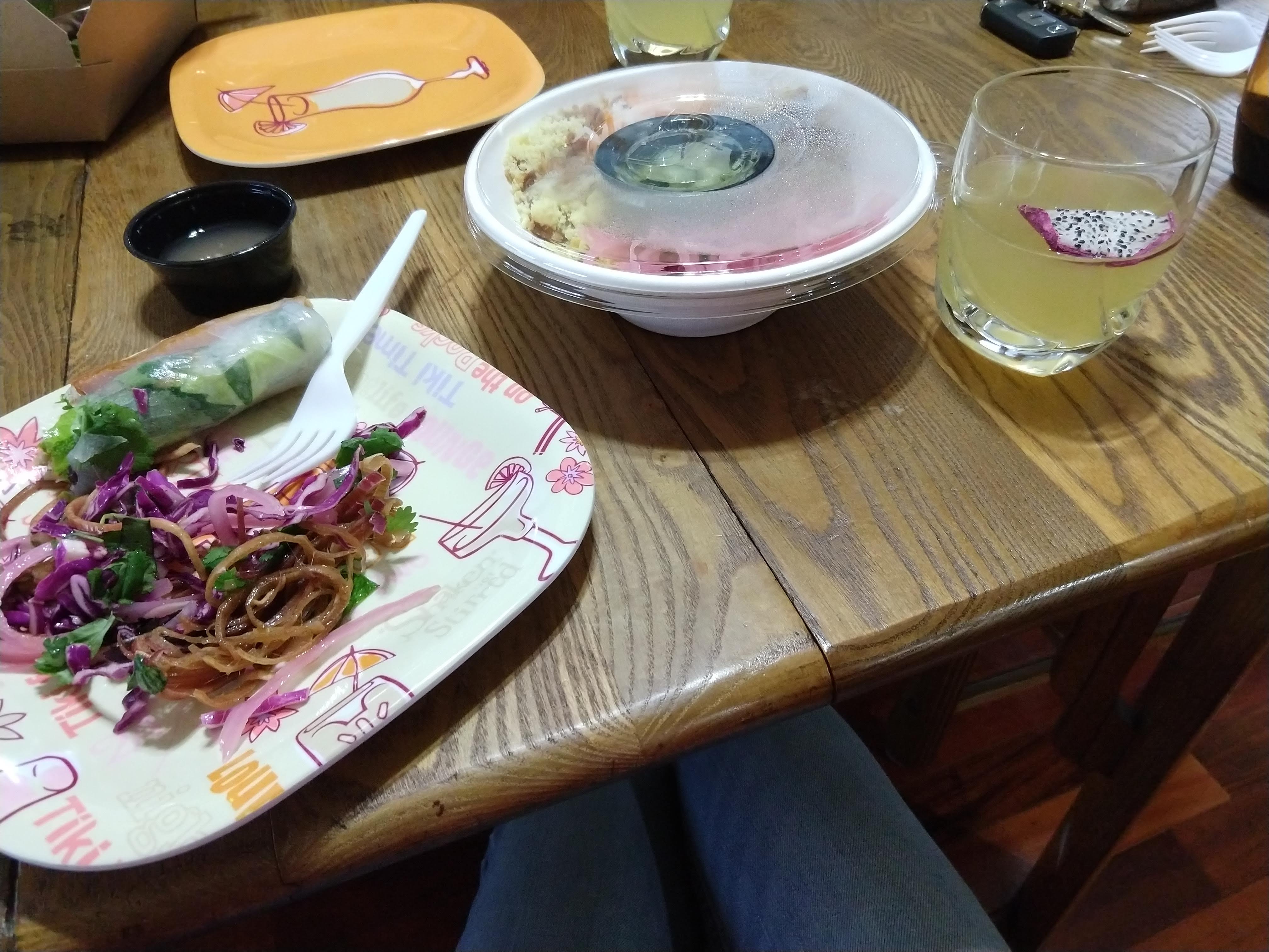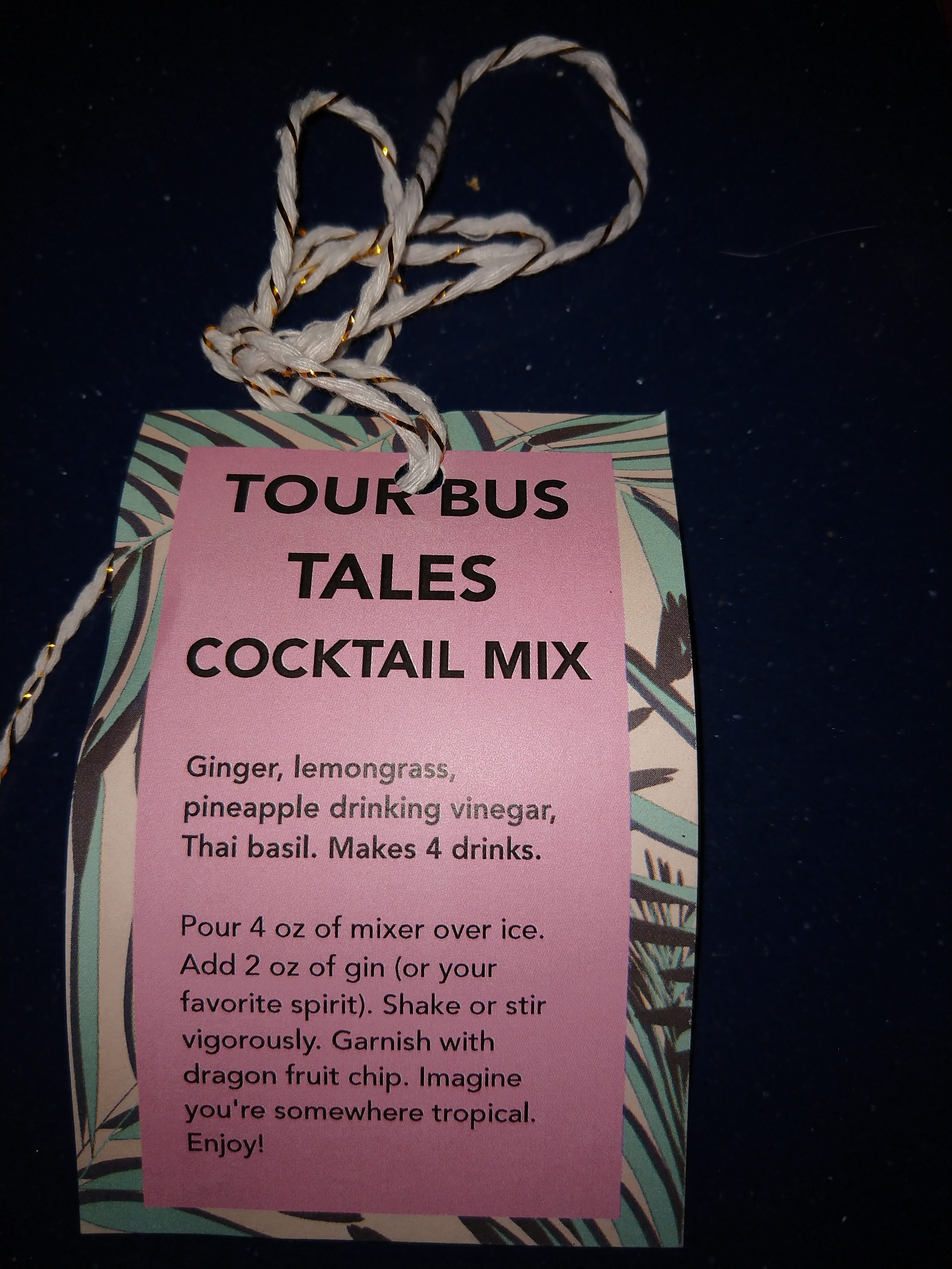 And it was damn tasty (I LOVE their spring rolls with mock duck). We even got to buy the cocktail mix for Tour Bus Tales. All we/Chad had to do was add gin.