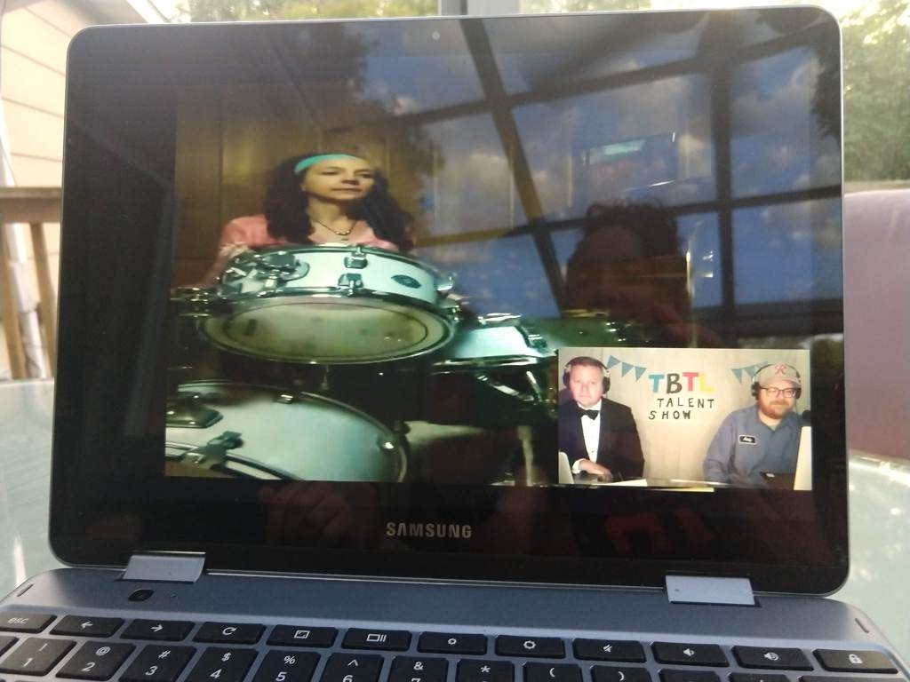 I knew immediately that I wanted to enter a submission, and that drumming was my best bet. Drumming is definitely my highest quality amateur talent, and I’m not above capitalizing on the uniqueness of being a middle-aged lady drummer. Yes, I felt a little silly, but I worked on my song and got it filmed and sent in right away. I didn’t want to forget and I didn’t want to overthink it. Luckily, I had recently “wrote” and performed my original drum solo “Pandrumic” for some virtual coffee houses so all I had to do was get it down to a minute.
