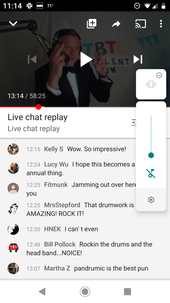 - I’m happy that a fellow fan said in the comments that it was cool that I look “chill”…based on my friend Pat’s reaction to my “low-key” drumming style I’m always a little self-conscious that I seem blaise, so I love seeing this counted as as a positive.