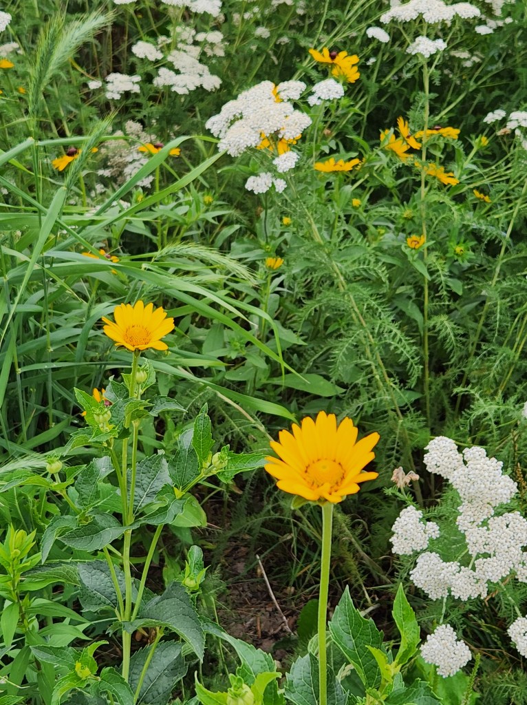 One of the results of this stormwater management project is an abundance of wildflowers. Just like living close to a rail yard has made me more open to the coolness of trains, my frequent exposure to these wildflowers has changed my perspective about wildflowers. Okay, up until about two months ago, I basically thought of all the new wildflowers that were growing along new pedestrian path as weeds. Weeds that were intentionally allowed to flourish, weeds that may even have some pollination values, but still weeds.